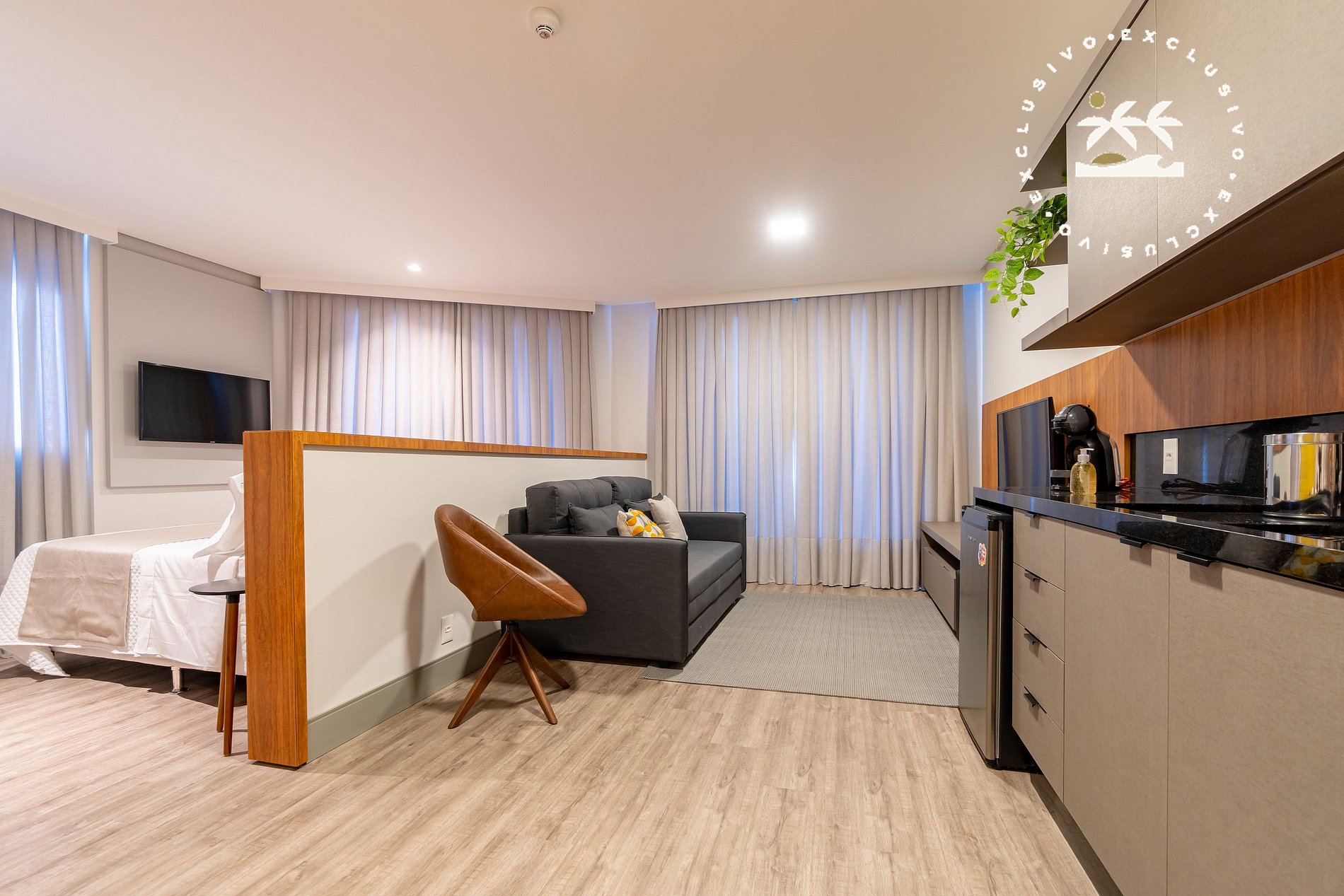 El Apartamento 101 de Aion Suites Bombinhas tiene capacidad para 04 personas (capacidad máxima incluyendo niños de cualquier edad).