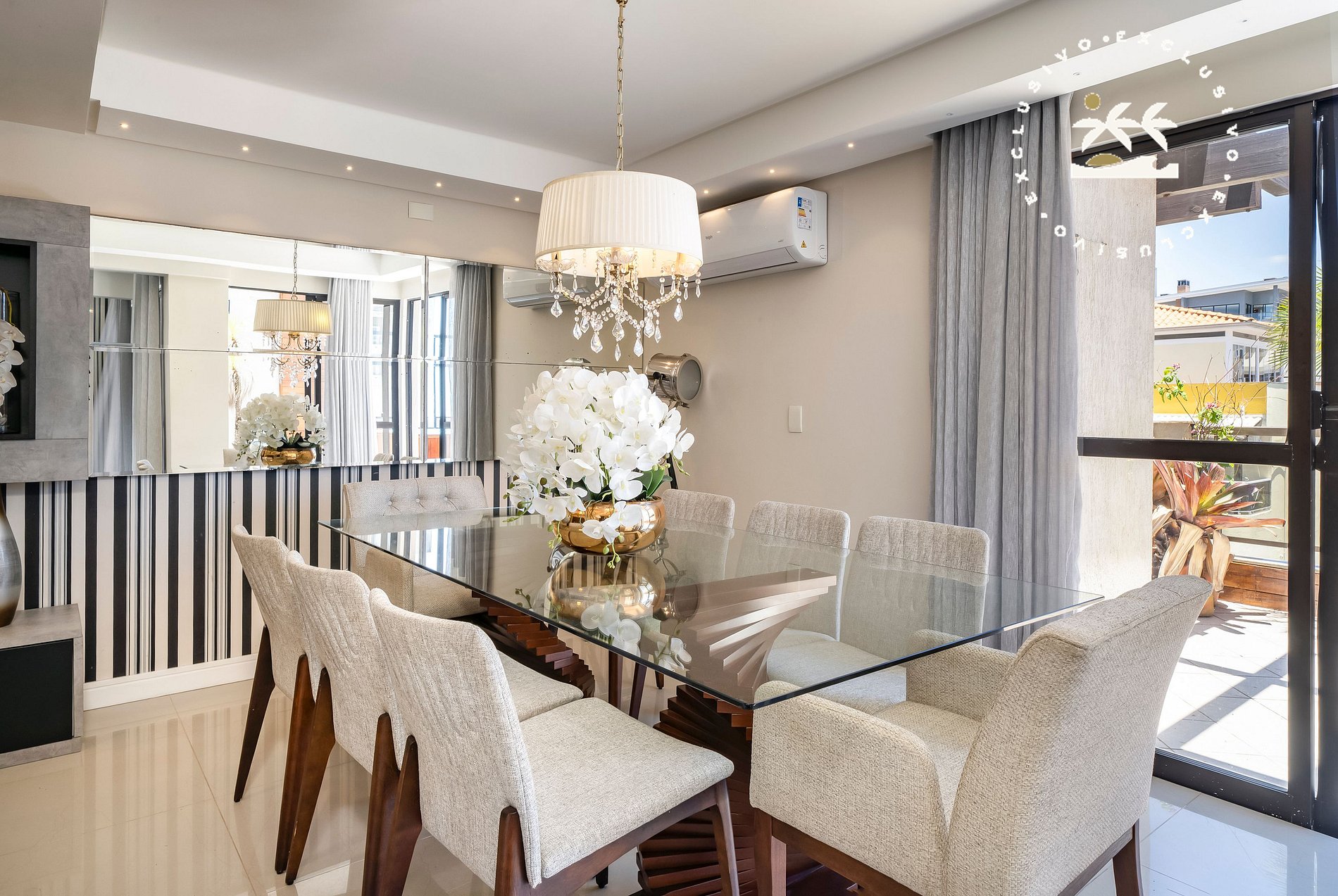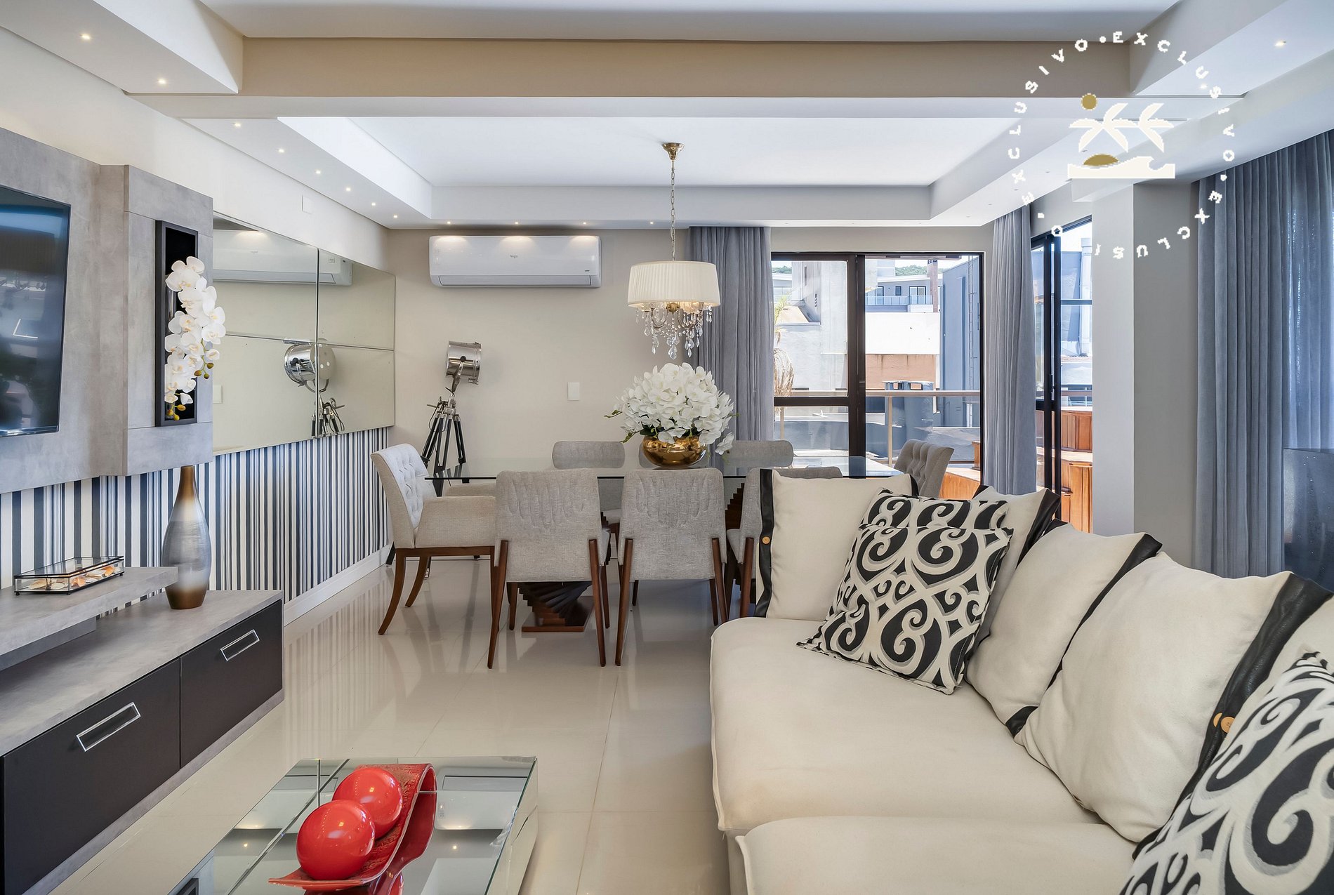 Sala de estar e jantar integradas;