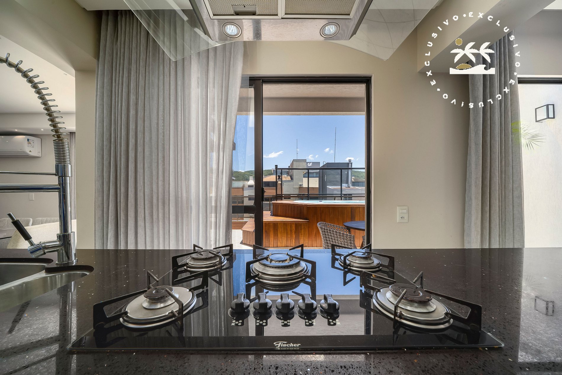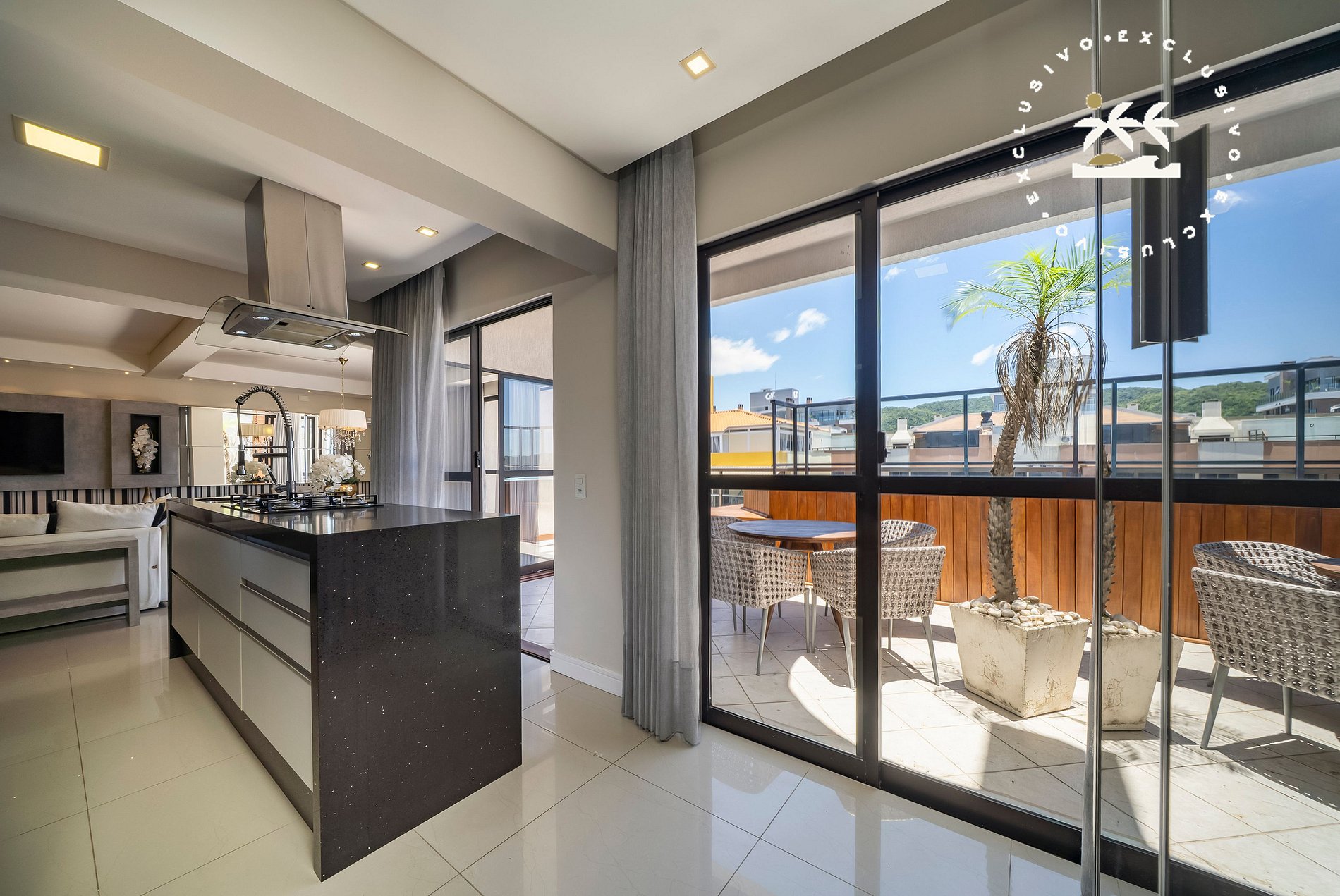 A sacada é um dos grandes diferenciais, equipada com piscina privativa e churrasqueira, ideal para momentos de lazer e descanso.