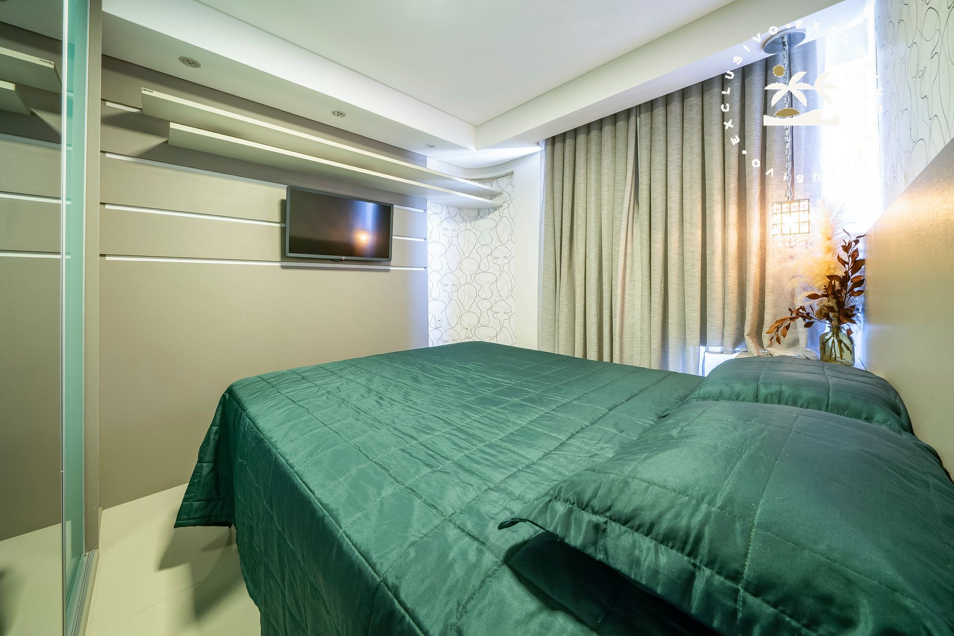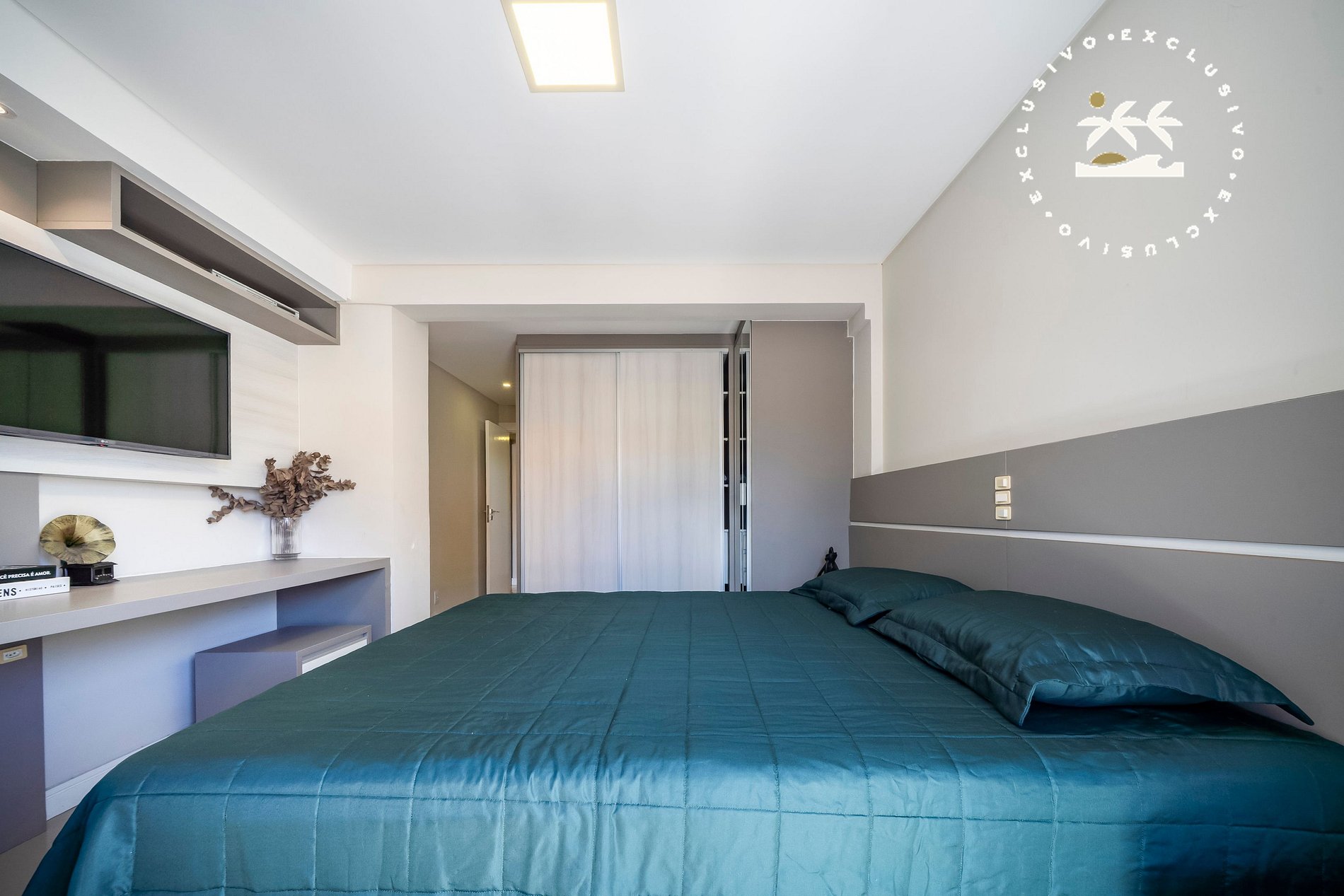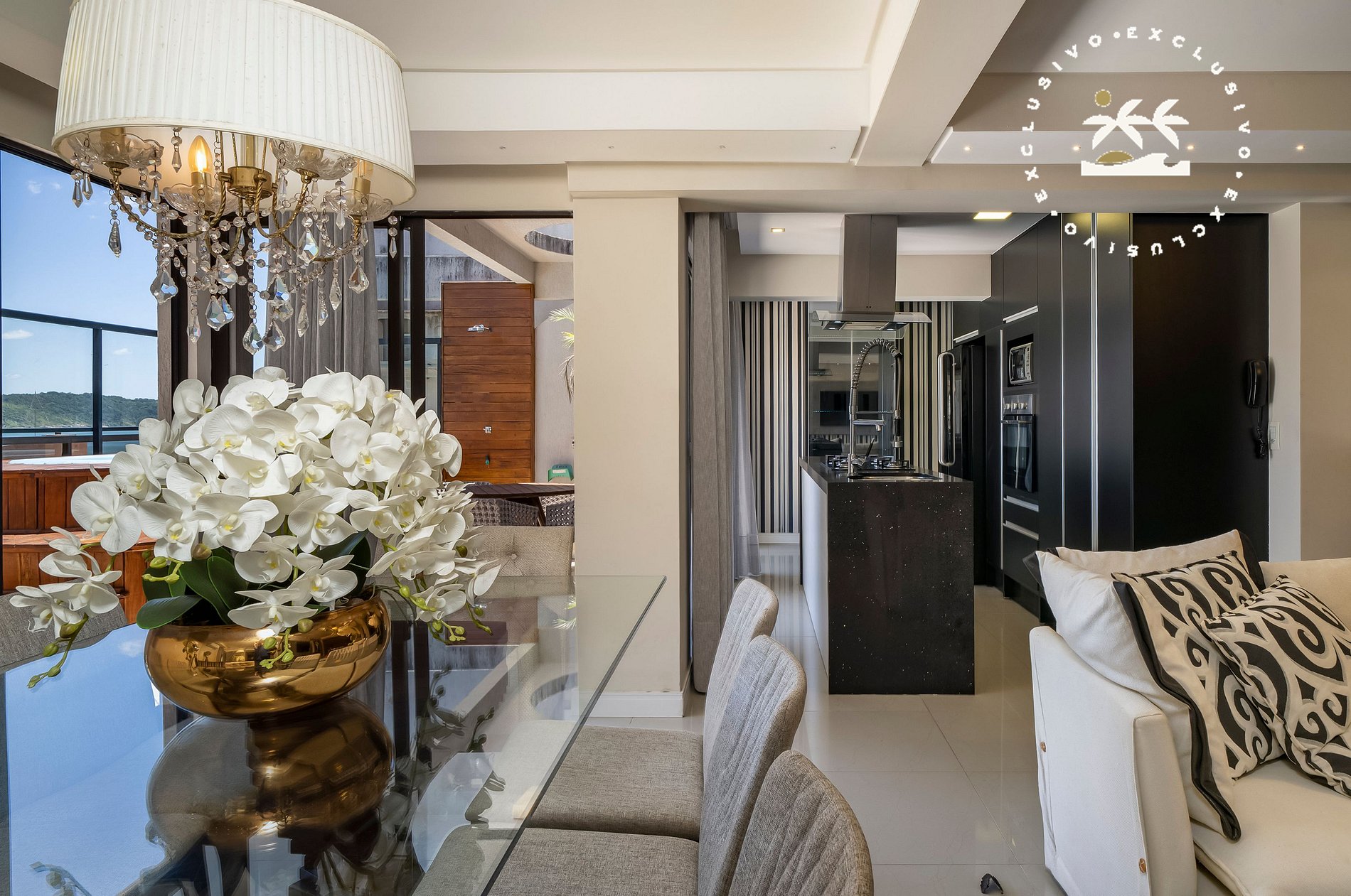 O imóvel dispõe de 03 suítes com cama de casal, contando com ambientes amplos e bem distribuídos. A sala de estar e jantar integradas se conectam à cozinha completa com ilha central, proporcionando praticidade durante a estadia.
