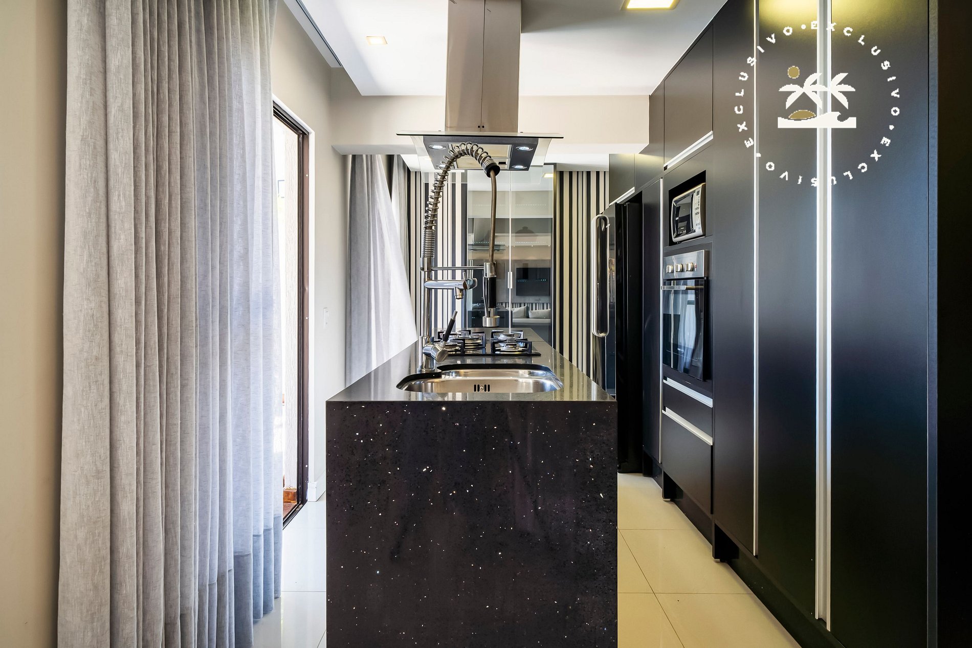 Cozinha completa com ilha central;