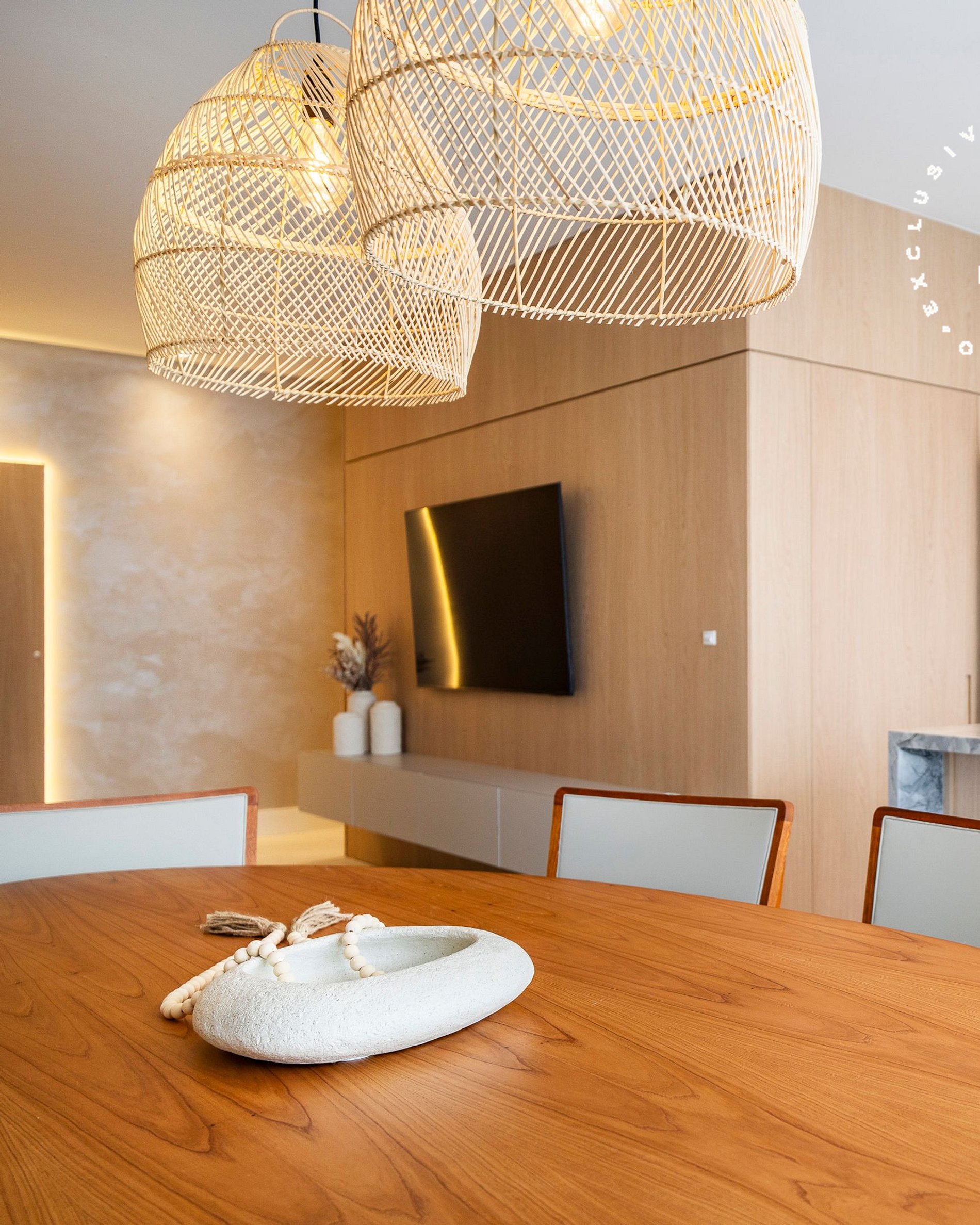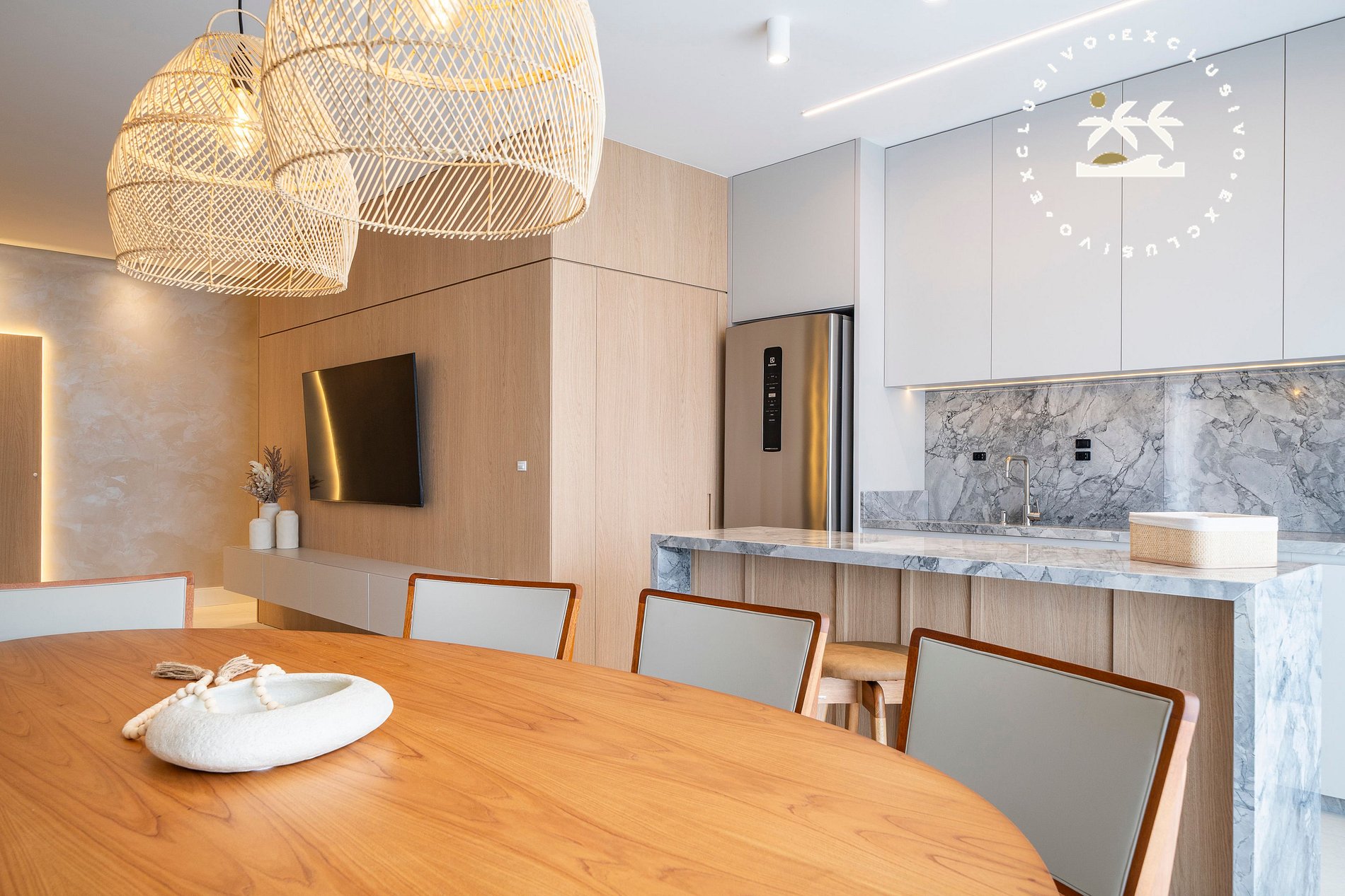 Mesa de jantar entre a cozinha e a sala;
