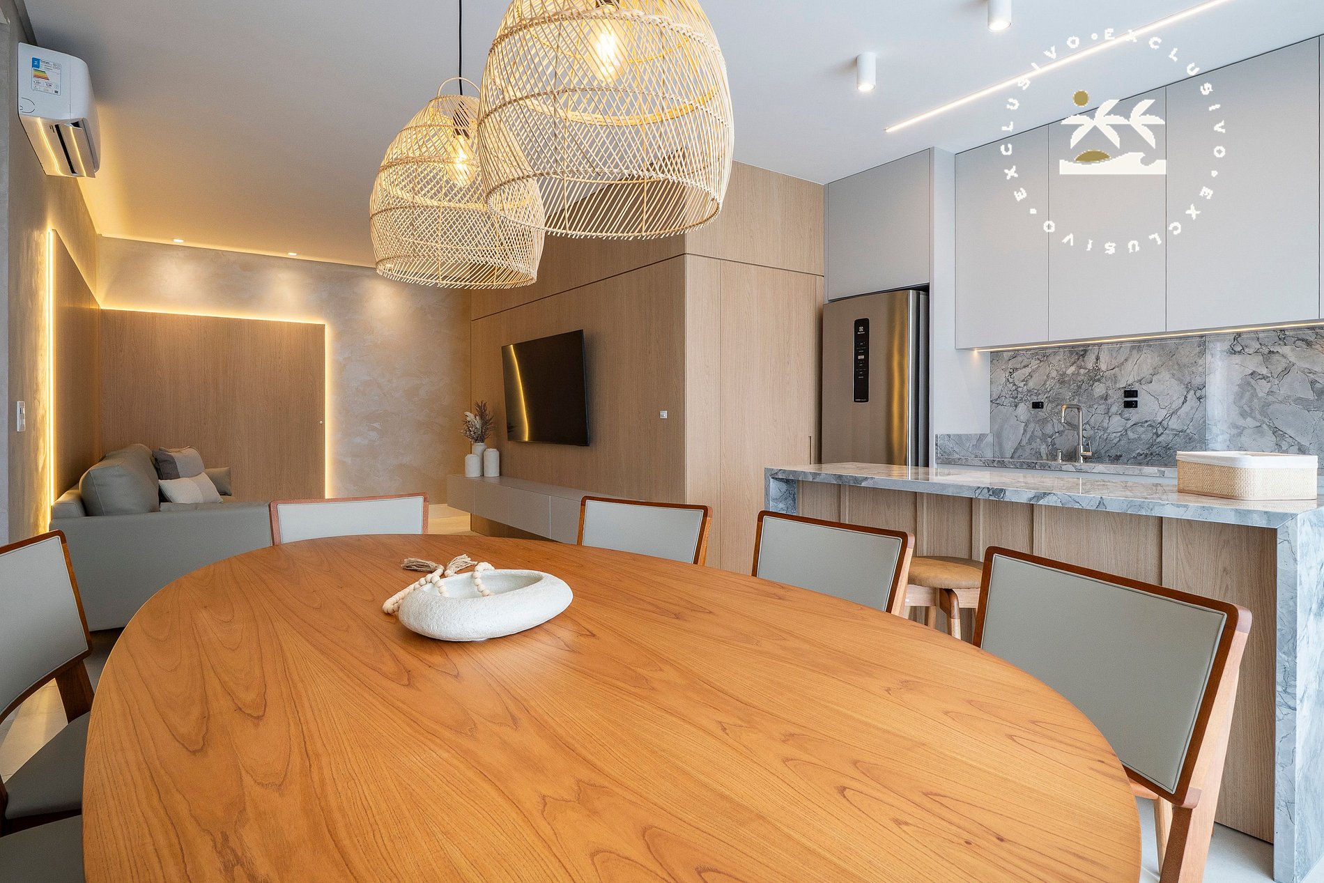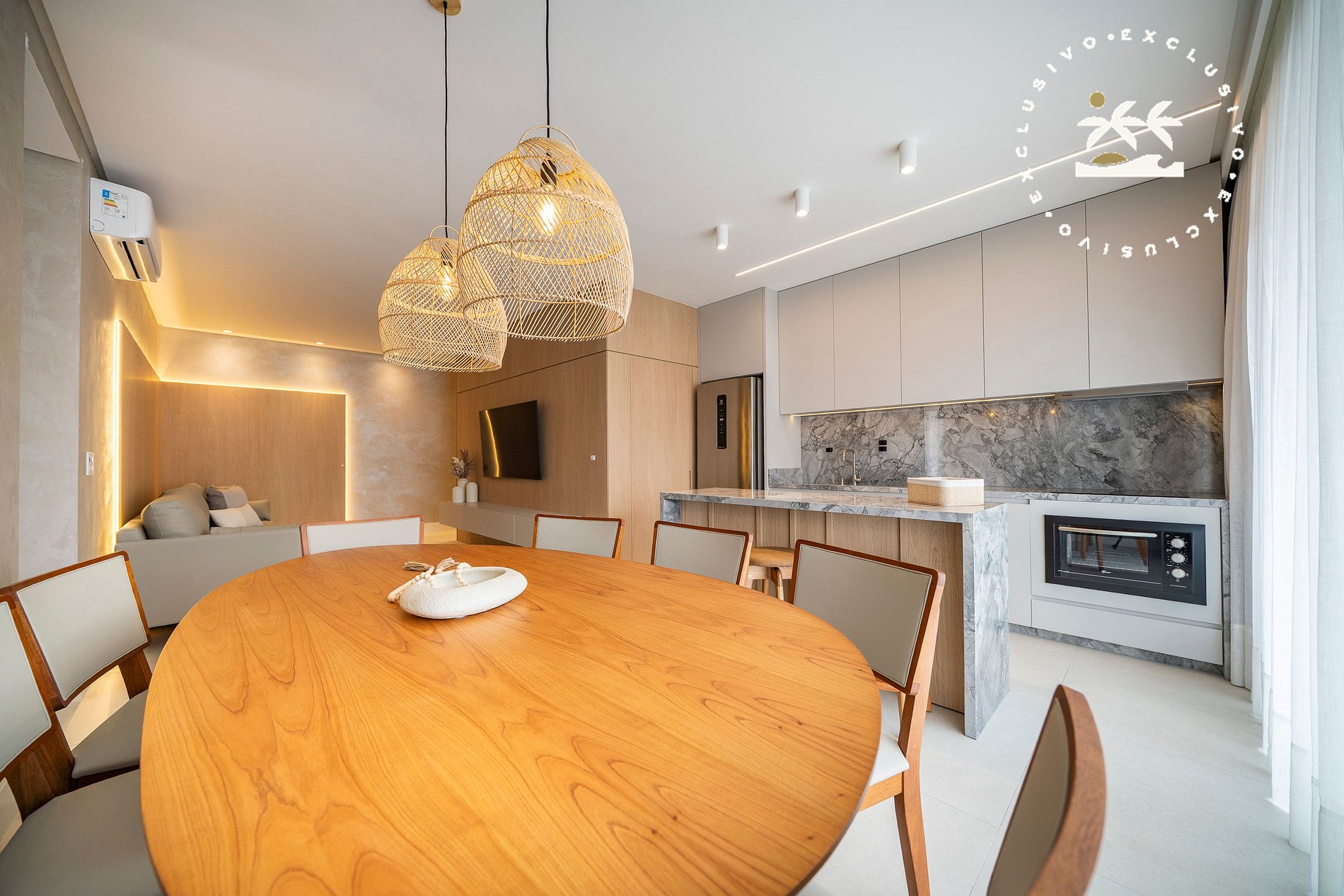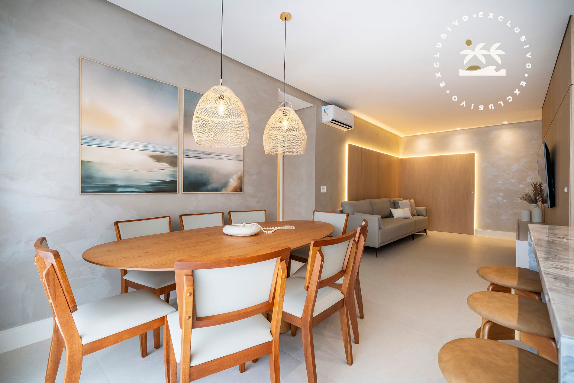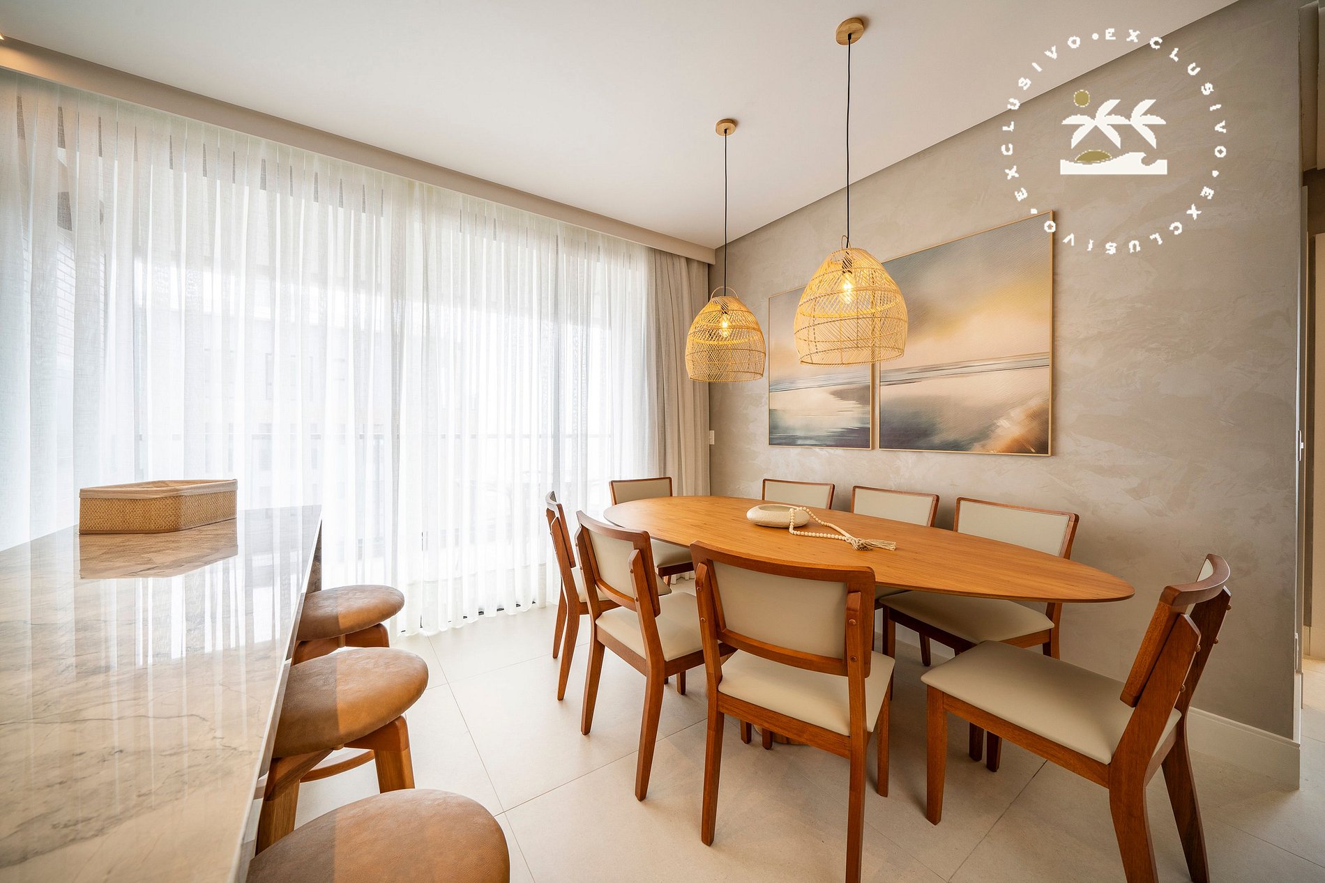 O imóvel acomoda até 07 pessoas, sendo no máximo 06 adultos e 01 criança de até 2 anos, e dispõe de 03 suítes, com ambientes amplos, bem distribuídos e mobiliados com padrão elevado.