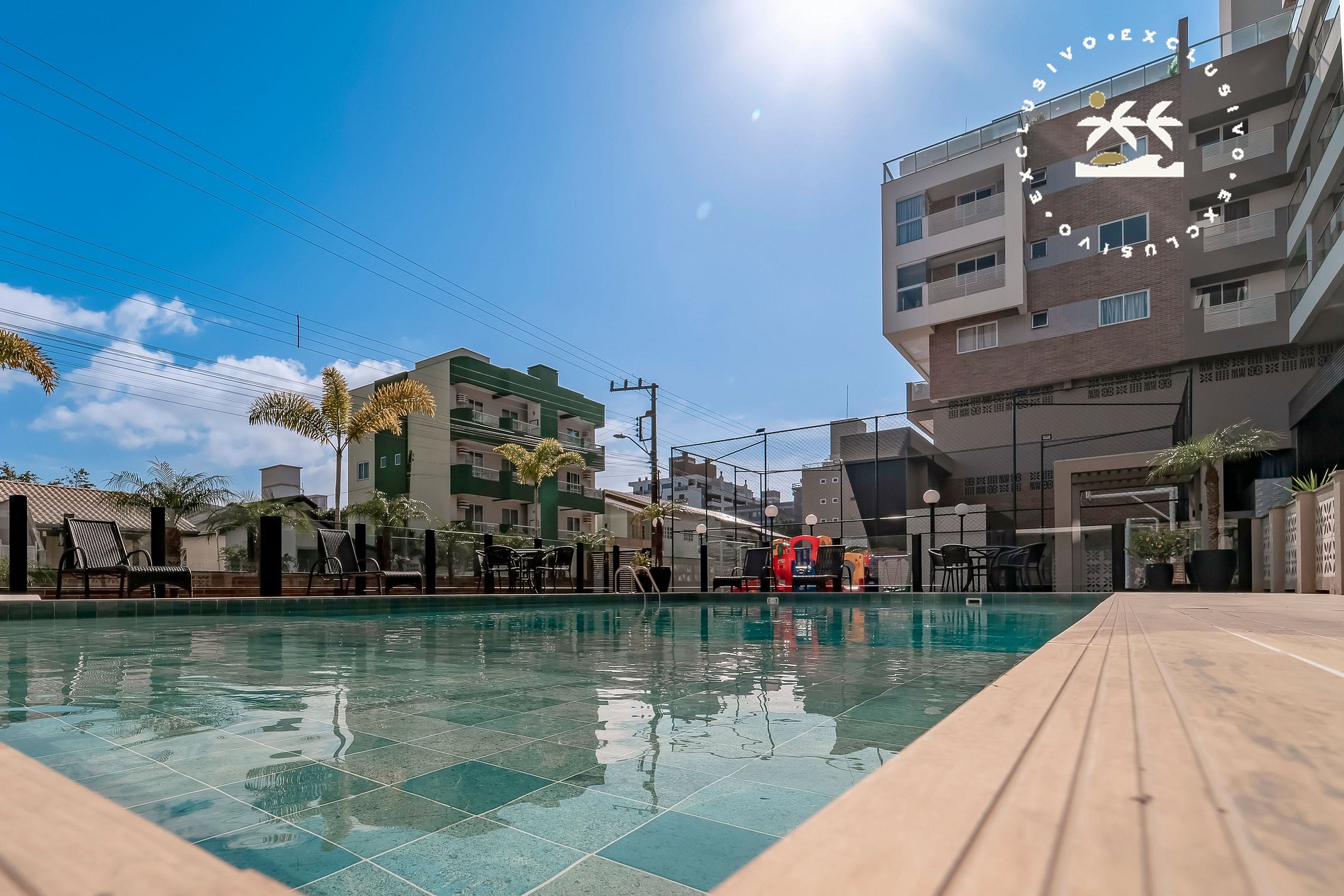 - Áreas disponíveis para hóspede: piscina, jacuzzi, quadra de esportes, parquinho infantil, academia e sala de jogos.