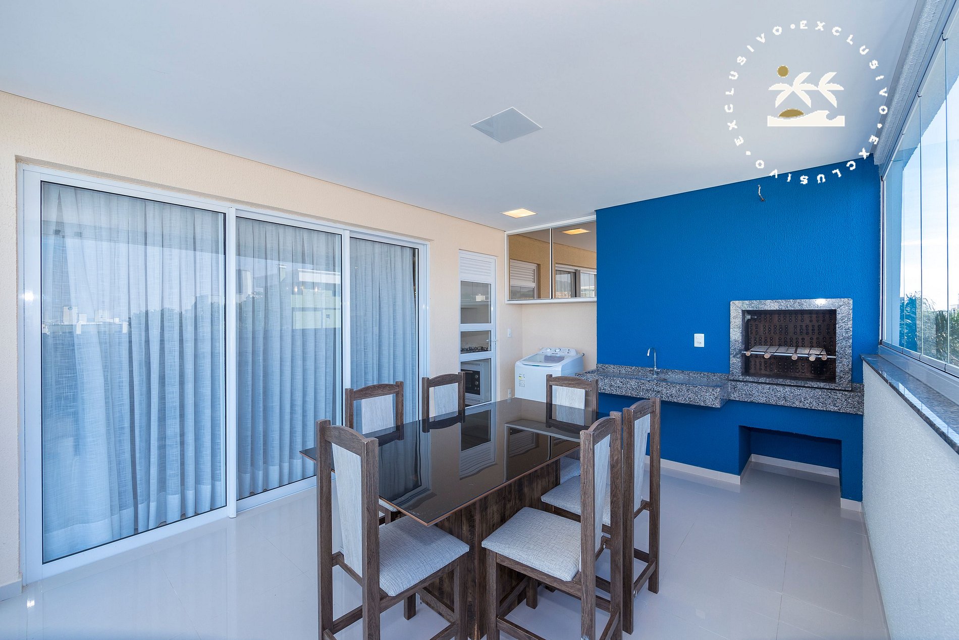 - Sacada com churrasqueira e piscina privativa.