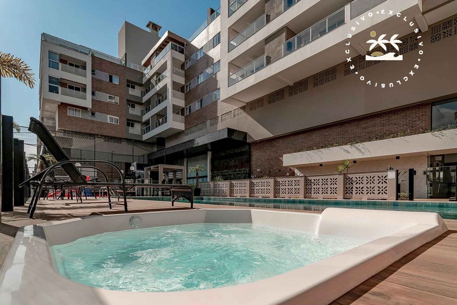 - Áreas disponíveis para hóspede: piscina, jacuzzi, quadra de esportes, parquinho infantil, academia e sala de jogos.