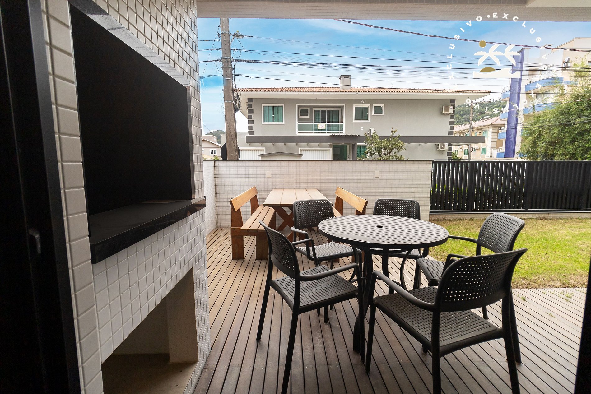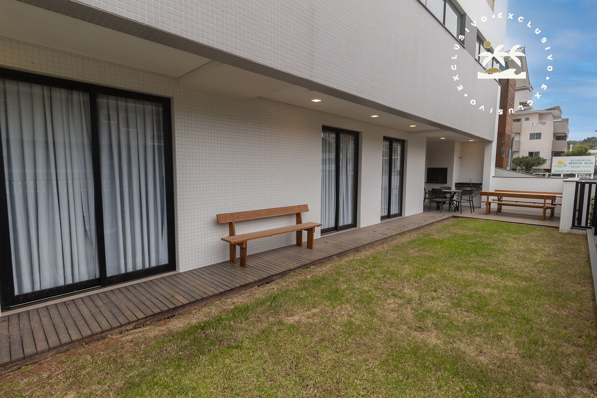 - Área externa com jardim e churrasqueira.
