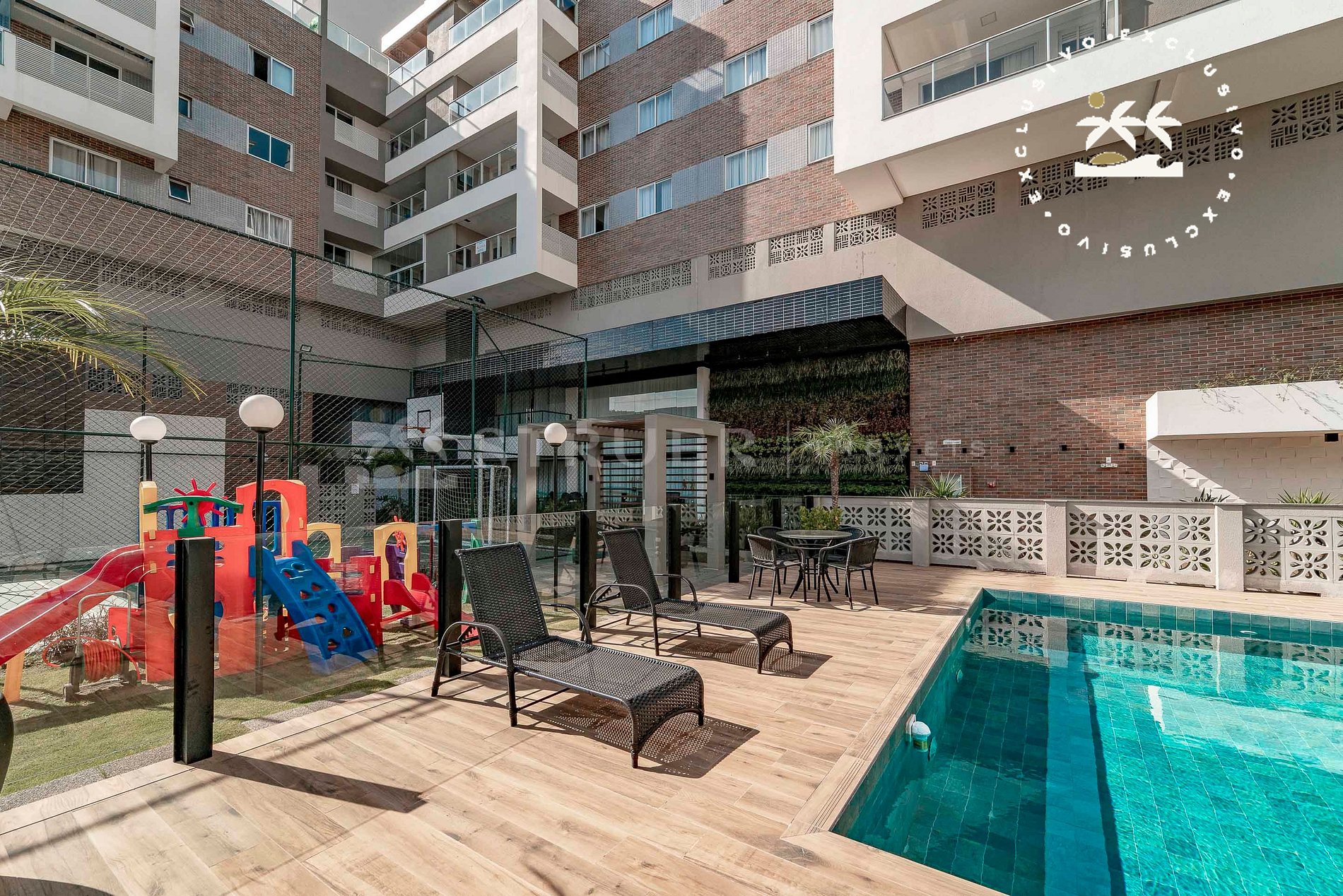 - Áreas disponíveis para hóspede: piscina, jacuzzi, quadra de esportes, parquinho infantil, academia e sala de jogos.